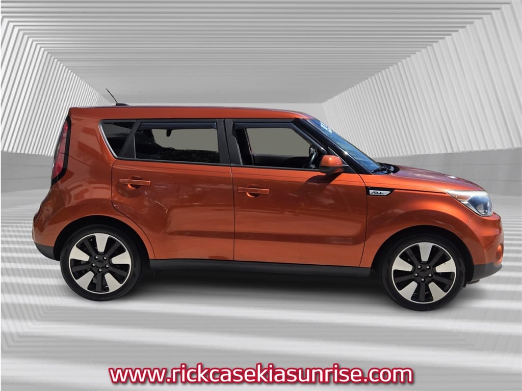 10 year or 100,000 mile Powertrain Warranty, 150 Point Inspection, Bluetooth, iPod Connector, BACK UP CAMERA, Unlimited Car Wash, Rick Case Rewards, 17" Alloy Wheels, 4-Wheel Disc Brakes, 6 Speakers, ABS brakes, Air Conditioning, Apple CarPlay & Android Auto, Automatic temperature control, Designer Collection Package, Dual front impact airbags, Dual front side impact airbags, Emergency communication system: UVO eServices, Exterior Parking Camera Rear, Front anti-roll bar, Front wheel independent suspension, Leather-Wrapped Steering Wheel & Shift Knob, Low tire pressure warning, Occupant sensing airbag, Overhead airbag, Rear window defroster, Tachometer, Telescoping steering wheel, Tilt steering wheel, Trip computer, Wheels: 18" Black Spoke Alloy. Certified. Wild Orange 2018 Kia Soul Plus FWD 6-Speed Automatic with Sportmatic I4 Kia Details: