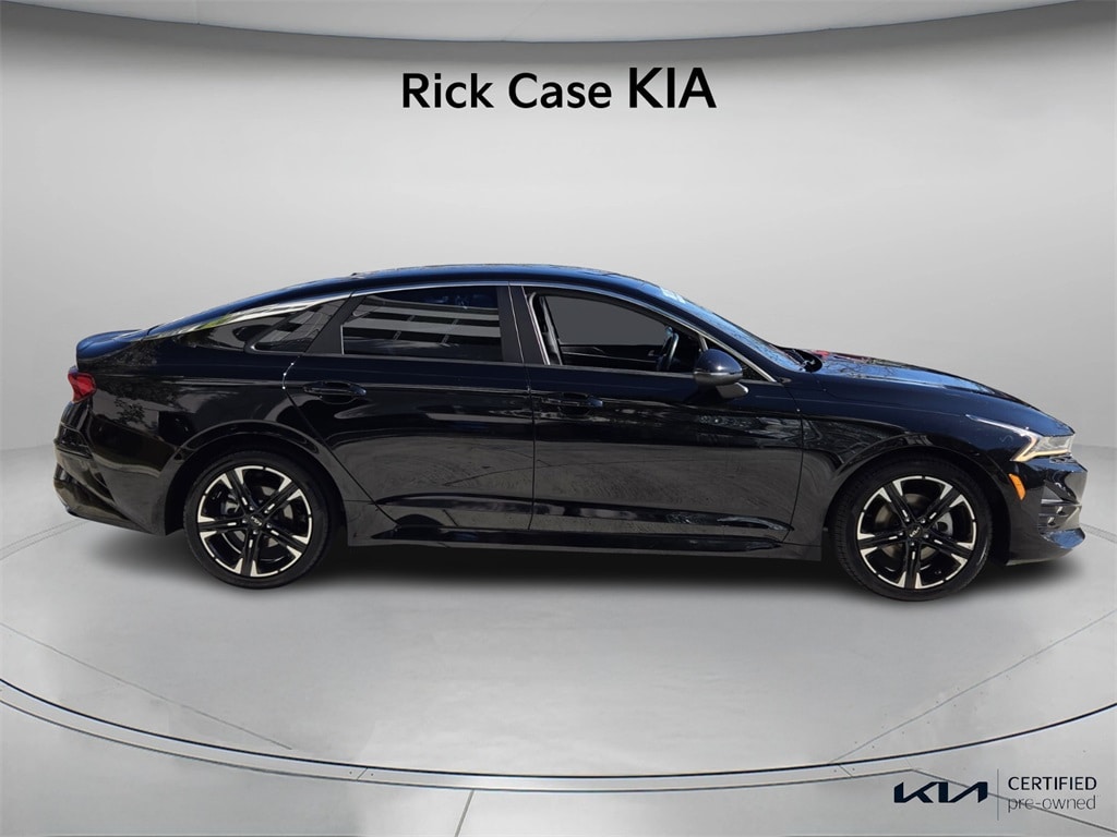 CARFAX One-Owner. 10 year or 100,000 mile Powertrain Warranty, 150 Point Inspection, Kia Certified, Unlimited Car Wash, Rick Case Rewards, 4-Wheel Disc Brakes, ABS brakes, Alloy wheels, Apple CarPlay & Android Auto, Automatic temperature control, Brake assist, Delay-off headlights, Electronic Stability Control, Front dual zone A/C, Front fog lights, Navigation System, Power driver seat, Speed control, Wheels: 7.5J x 18" Gloss Black Machined Finish Alloy. Certified. Ebony Black 2022 Kia K5 GT-Line AWD 8-Speed Automatic I4 Kia Certified Pre-Owned Details: