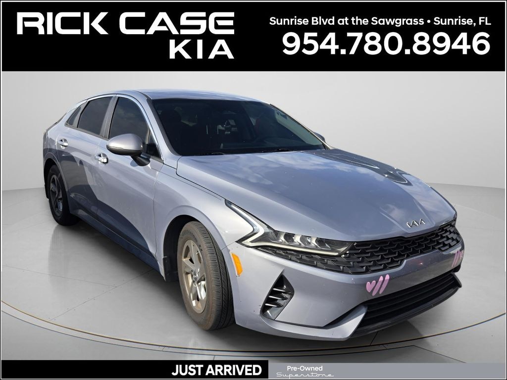 Recent Arrival! 10 year or 100,000 mile Powertrain Warranty, 150 Point Inspection, Kia Certified, Unlimited Car Wash, Rick Case Rewards, 4-Wheel Disc Brakes, ABS brakes, Alloy wheels, Automatic temperature control, Brake assist, Delay-off headlights, Electronic Stability Control, Front dual zone A/C, Fully automatic headlights, Panic alarm, Security system, Speed control, Wheels: 6.5J x 16" Gray Alloy. Certified. Everlasting Silver 2022 Kia K5 LXS FWD 8-Speed Automatic I4 Kia Certified Pre-Owned Details: