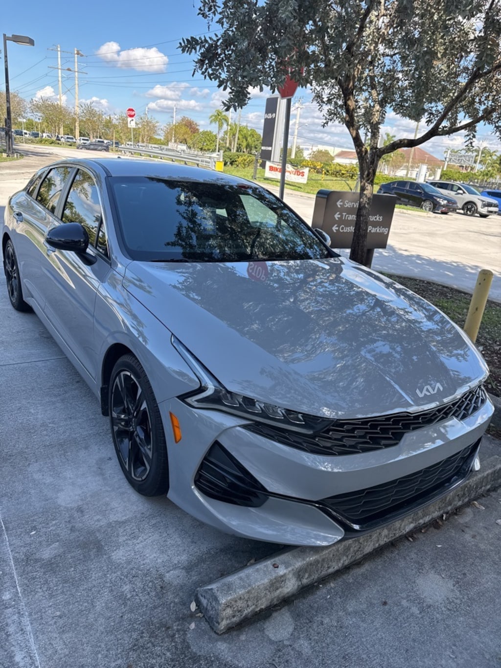 Recent Arrival! CARFAX One-Owner. 10 year or 100,000 mile Powertrain Warranty, 150 Point Inspection, Bluetooth, Kia Certified, Navigation, BACK UP CAMERA, Unlimited Car Wash, Rick Case Rewards, 4-Wheel Disc Brakes, 6 Speakers, ABS brakes, Air Conditioning, Apple CarPlay & Android Auto, Brake assist, Dual front impact airbags, Dual front side impact airbags, Electronic Stability Control, Front anti-roll bar, Front dual zone A/C, Heated front seats, Knee airbag, Low tire pressure warning, Navigation System, Occupant sensing airbag, Overhead airbag, Panic alarm, Power driver seat, Power steering, Power windows, Radio data system, Radio: AM/FM/MP3 Audio System, Rear anti-roll bar, Rear side impact airbag, Rear window defroster, Remote keyless entry, Security system, Split folding rear seat, Steering wheel mounted audio controls, Tachometer, Telescoping steering wheel, Tilt steering wheel, Trip computer. Certified. Wolf Gray 2022 Kia K5 GT-Line AWD 8-Speed Automatic I4 Kia Certified Pre-Owned Details: