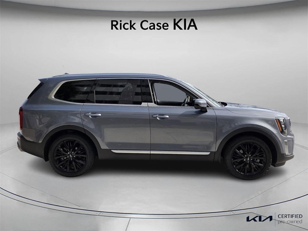 Priced below KBB Fair Purchase Price! CARFAX One-Owner. Clean CARFAX. 10 year or 100,000 mile Powertrain Warranty, 150 Point Inspection, Kia Certified, Unlimited Car Wash, Rick Case Rewards, 4-Wheel Disc Brakes, ABS brakes, Alloy wheels, Apple CarPlay & Android Auto, Auto-dimming Rear-View mirror, Automatic temperature control, Brake assist, Delay-off headlights, Electronic Stability Control, Front dual zone A/C, Front fog lights, Memory seat, Navigation System, Panic alarm, Power driver seat, Power Liftgate, Power moonroof, Security system, Self Leveling Rear Suspension, Speed control, Tow Hitch w/Harness (TOF), Towing Package, Wheels: 20" x 7.5" Black Alloy. Certified. Everlasting Silver 2022 Kia Telluride SX AWD 8-Speed Automatic 3.8L V6 DOHC Kia Certified Pre-Owned Details: