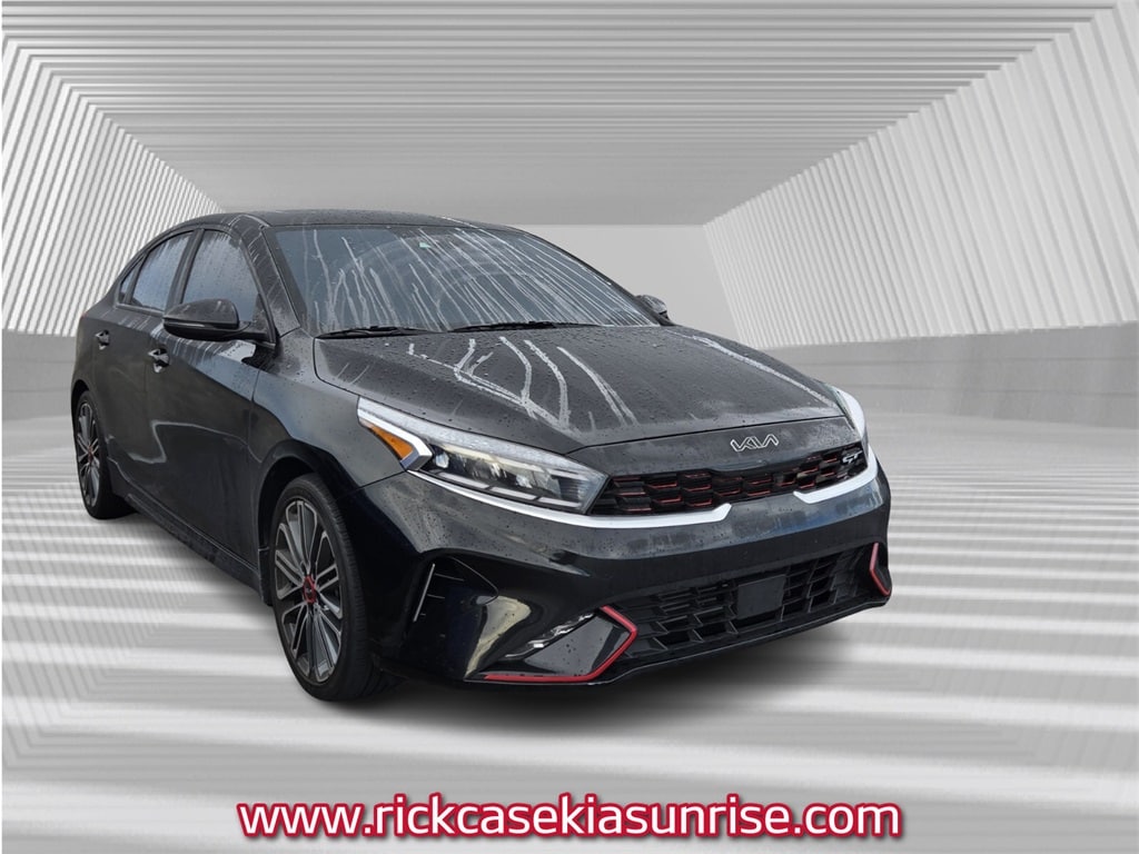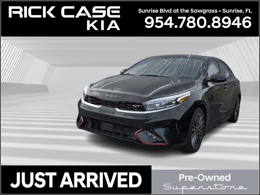 Recent Arrival! CARFAX One-Owner. Clean CARFAX. 150 Point Inspection, Bluetooth, iPod Connector, Kia Certified, Leather, Navigation, Power Sunroof, BACK UP CAMERA, Unlimited Car Wash, Rick Case Rewards, 10-Way Power Driver's Seat, 18" x 7.5J Alloy Wheels, 4-Wheel Disc Brakes, 6 Speakers, ABS brakes, AM/FM radio: SiriusXM, Apple CarPlay & Android Auto, Automatic temperature control, Dual front impact airbags, Dual front side impact airbags, Emergency communication system, Exterior Parking Camera Rear, Front anti-roll bar, Front dual zone A/C, GT2 Package, Heated & Ventilated Front Seats, LED Interior Lighting, Low tire pressure warning, Navigation System, Occupant sensing airbag, Overhead airbag, Parking Distance Warning-Reverse, Power Sunroof, Radio: 10.25" Display Audio, Radio: harman kardon Premium Audio, Rear anti-roll bar, Rear window defroster, SynTex Seat Trim, Tachometer, Telescoping steering wheel, Tilt steering wheel, Trip computer. Certified. Aurora Black Pearl 2023 Kia Forte GT FWD 7-Speed Automatic 1.6L I4 Turbo Kia Certified Pre-Owned Details: