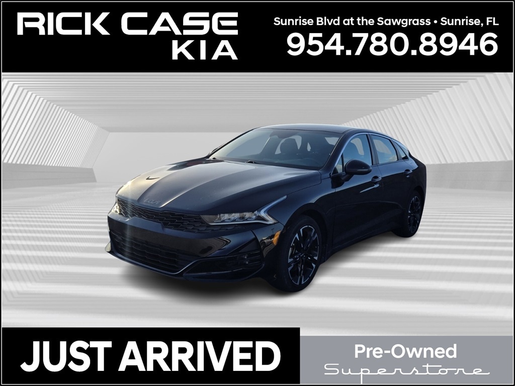 Recent Arrival! Priced below KBB Fair Purchase Price! CARFAX One-Owner. 150 Point Inspection, Bluetooth, Kia Certified, Navigation, BACK UP CAMERA, Unlimited Car Wash, Rick Case Rewards, 4-Wheel Disc Brakes, 6 Speakers, ABS brakes, Air Conditioning, Apple CarPlay & Android Auto, Dual front impact airbags, Dual front side impact airbags, Front anti-roll bar, Knee airbag, Low tire pressure warning, Navigation System, Occupant sensing airbag, Overhead airbag, Power driver seat, Power steering, Power windows, Radio: AM/FM/MP3 Audio System, Rear anti-roll bar, Rear side impact airbag, Rear window defroster, Remote keyless entry, Steering wheel mounted audio controls, Tachometer, Telescoping steering wheel, Tilt steering wheel, Trip computer, Wheels: 18" Gloss Black Machined Finish Alloy. Certified. Ebony Black 2023 Kia K5 GT-Line FWD 8-Speed Automatic 1.6L I4 DGI Turbocharged DOHC 16V LEV3-ULEV70 180hp Kia Certified Pre-Owned Details: