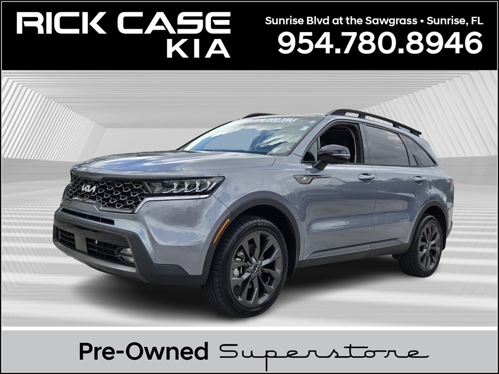 CARFAX One-Owner. 10 year or 100,000 mile Powertrain Warranty, 150 Point Inspection, Kia Certified, Unlimited Car Wash, Rick Case Rewards, 4-Wheel Disc Brakes, ABS brakes, Alloy wheels, Apple CarPlay & Android Auto, Auto-dimming Rear-View mirror, Automatic temperature control, Brake assist, Delay-off headlights, Electronic Stability Control, Exterior Parking Camera Rear, Front dual zone A/C, Front fog lights, Navigation System, Panic alarm, Power driver seat, Power Liftgate, Power moonroof, Security system, Speed control, Wheels: 8.5J x 20" Matte Gray Alloy. Certified. Everlasting Silver 2023 Kia Sorento X-Line EX AWD 8-Speed DCT 2.5L I4 DGI Turbocharged DOHC 16V LEV3-ULEV70 281hp Kia Certified Pre-Owned Details: