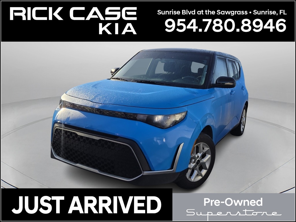 Recent Arrival! CARFAX One-Owner. 10 year or 100,000 mile Powertrain Warranty, 150 Point Inspection, Kia Certified, BACK UP CAMERA, Unlimited Car Wash, Rick Case Rewards, 16" Alloy Wheels, 4-Wheel Disc Brakes, ABS brakes, Alloy wheels, Apple CarPlay & Android Auto, Automatic temperature control, Brake assist, Delay-off headlights, Electronic Stability Control, Exterior Parking Camera Rear, Front dual zone A/C, Fully automatic headlights, Navigation System, Panic alarm, Power driver seat, Speed control. Surf Blue w/Black Roof 2023 Kia Soul S FWD CVT 2.0L I4 DOHC