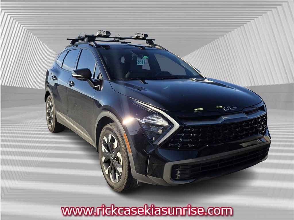 Recent Arrival! Priced below KBB Fair Purchase Price! CARFAX One-Owner. Clean CARFAX. 150 Point Inspection, iPod Connector, Leather, Navigation, Panoramic Roof, BACK UP CAMERA, Unlimited Car Wash, Rick Case Rewards, 4-Wheel Disc Brakes, 6 Speakers, ABS brakes, AM/FM radio: SiriusXM, Apple CarPlay & Android Auto, Automatic temperature control, Driver vanity mirror, Dual front impact airbags, Dual front side impact airbags, Emergency communication system, Front anti-roll bar, Front dual zone A/C, LED Interior Lighting, Low tire pressure warning, Navigation System, Occupant sensing airbag, Overhead airbag, Panoramic Sunroof, Passenger vanity mirror, Power driver seat, Power steering, Premium Leatherette Seat Trim, Rear anti-roll bar, Rear window defroster, Remote keyless entry, Smart Power Liftgate, Steering wheel mounted audio controls, Tachometer, Telescoping steering wheel, Tilt steering wheel, Trip computer, Wheels: 19" Gloss Black Alloy, X-Line Premium Package. Certified. Ebony Black 2023 Kia Sportage X-Line AWD 8-Speed Automatic I4 Kia Certified Pre-Owned Details:
