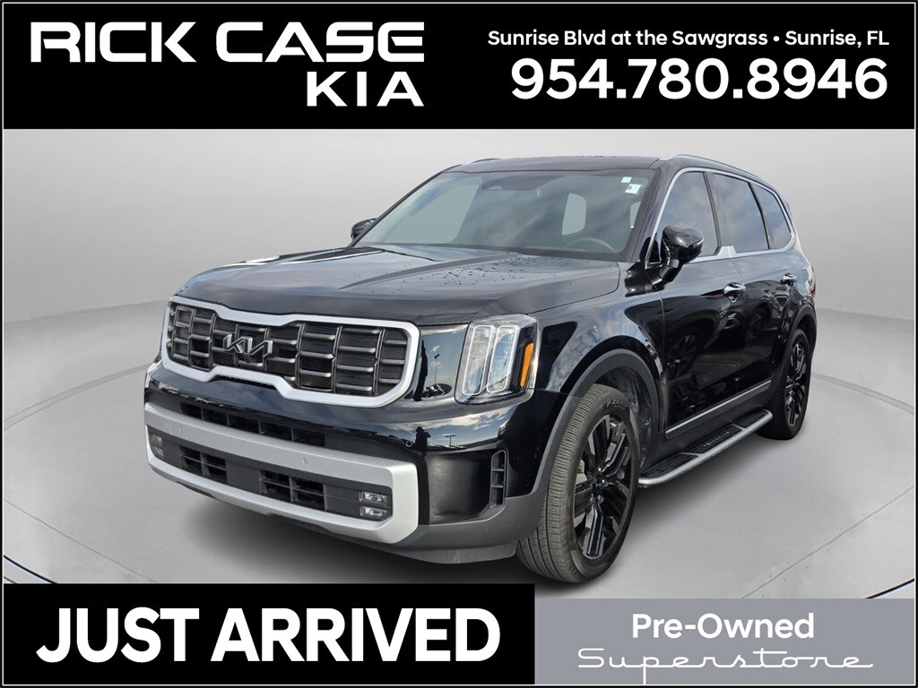 Recent Arrival! 150 Point Inspection, Bluetooth, iPod Connector, Kia Certified, Leather, Navigation, Power Sunroof, Panoramic Roof, BACK UP CAMERA, Unlimited Car Wash, Rick Case Rewards, 10 Speakers, 4-Wheel Disc Brakes, ABS brakes, Air Conditioning, Apple CarPlay & Android Auto, Brake assist, Electronic Stability Control, Heated & Ventilated Front Bucket Seats, Memory seat, Navigation System, Panic alarm, Power driver seat, Power moonroof, Power steering, Rear audio controls, Rear reading lights, Security system, Tachometer, Telescoping steering wheel, Tilt steering wheel, Trip computer, Ventilated front seats, Wheels: 20" x 7.5" Black Finish. Certified. Ebony Black 2023 Kia Telluride SX FWD 8-Speed Automatic 3.8L V6 DGI DOHC Dual CVVT Kia Certified Pre-Owned Details: