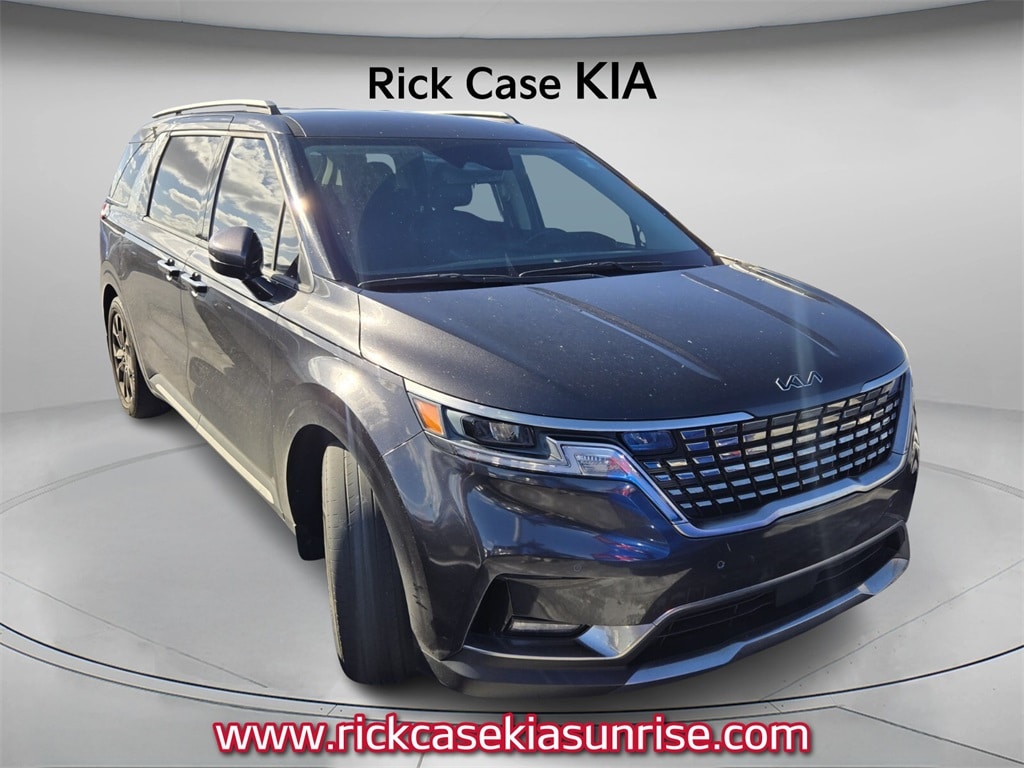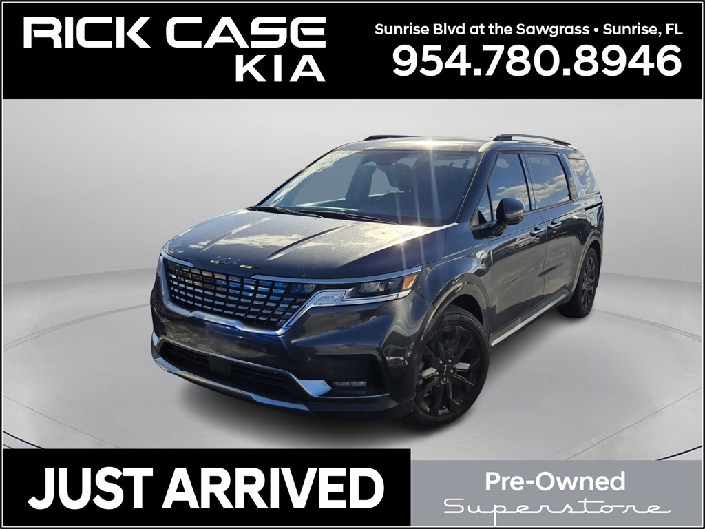 Recent Arrival! Priced below KBB Fair Purchase Price! CARFAX One-Owner. Clean CARFAX. 10 year or 100,000 mile Powertrain Warranty, 150 Point Inspection, Kia Certified, Unlimited Car Wash, Rick Case Rewards, 4-Wheel Disc Brakes, ABS brakes, Alloy wheels, Automatic temperature control, Brake assist, Delay-off headlights, Dual Screen Rear Seat Entertainment System, Exterior Parking Camera Rear, Front dual zone A/C, Front fog lights, Memory seat, Navigation System, Panic alarm, Power driver seat, Power Liftgate, Rear Seat Entertainment Package, Security system, Speed control, Wheels: 7.5J x 19" Black Painted Alloy. Certified. Panthera Metal 2024 Kia Carnival SX FWD 8-Speed Automatic V6 Kia Certified Pre-Owned Details:
