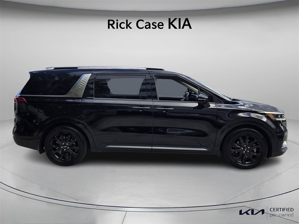 Recent Arrival! Priced below KBB Fair Purchase Price! CARFAX One-Owner. Clean CARFAX. 10 year or 100,000 mile Powertrain Warranty, 150 Point Inspection, Bluetooth, Kia Certified, Leather, Navigation, BACK UP CAMERA, Unlimited Car Wash, Rick Case Rewards, Tuscan Umber Interior Package, Surround View Monitor, 10 Speakers, 3rd row seats: split-bench, 4-Wheel Disc Brakes, ABS brakes, Air Conditioning, Apple CarPlay & Android Auto, Auto High-beam Headlights, Automatic temperature control, Delay-off headlights, Dual front impact airbags, Dual front side impact airbags, Dual Screen Rear Seat Entertainment System, Emergency communication system, Exterior Parking Camera Rear, Front anti-roll bar, Front dual zone A/C, Front fog lights, Fully automatic headlights, Heated & Ventilated Front Bucket Seats, Knee airbag, Low tire pressure warning, Memory seat, Navigation System, Occupant sensing airbag, Overhead airbag, Power Liftgate, Radio: AM/FM/HD Audio System, Rear air conditioning, Rear anti-roll bar, Rear Seat Entertainment Package, Rear window defroster, Reclining 3rd row seat, Tachometer, Telescoping steering wheel, Tilt steering wheel, Trip computer, Wheels: 7.5J x 19" Black Painted Alloy. Certified. Aurora Black Pearl 2024 Kia Carnival SX FWD 8-Speed Automatic V6 Kia Certified Pre-Owned Details: