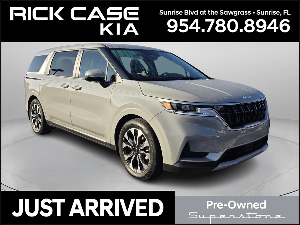 Recent Arrival! Priced below KBB Fair Purchase Price! CARFAX One-Owner. Clean CARFAX. 10 year or 100,000 mile Powertrain Warranty, 150 Point Inspection, Kia Certified, Unlimited Car Wash, Rick Case Rewards, 4-Wheel Disc Brakes, ABS brakes, Alloy wheels, Apple CarPlay & Android Auto, Brake assist, Electronic Stability Control, Navigation System, Panic alarm, Power driver seat, Security system, Speed control, Wheels: 7.5J x 19" Machine-Finished Alloy. Certified. Ceramic Silver 2024 Kia Carnival EX FWD 8-Speed Automatic V6 Kia Certified Pre-Owned Details: