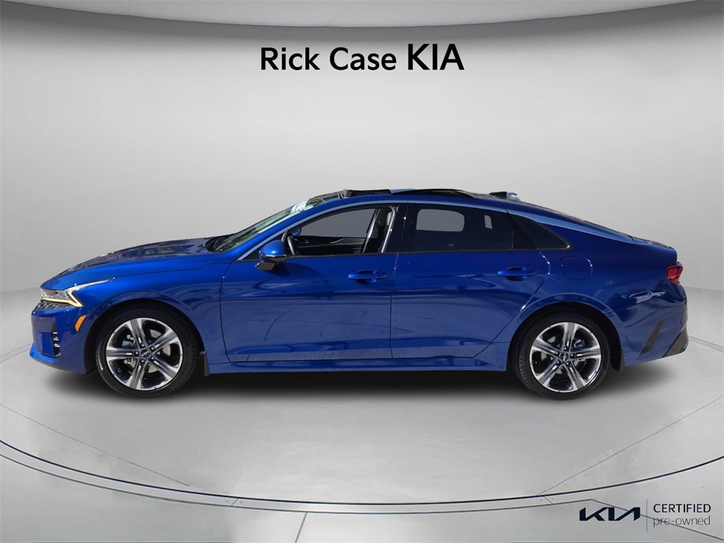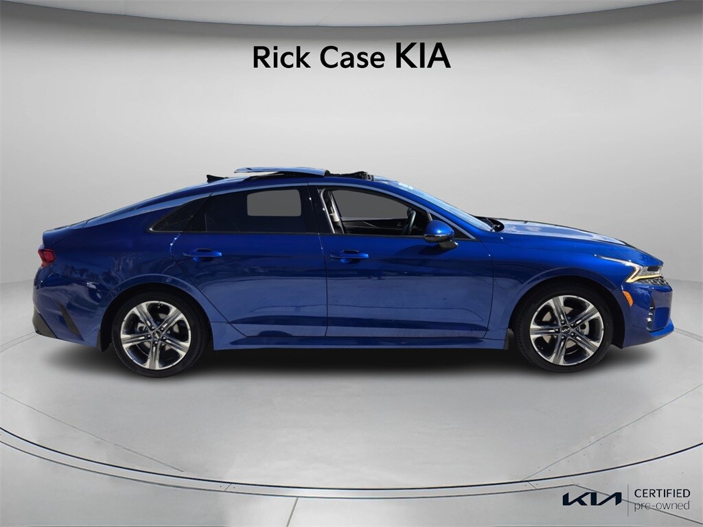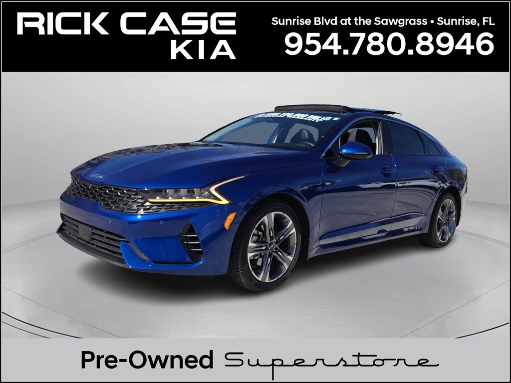 CARFAX One-Owner. 10 year or 100,000 mile Powertrain Warranty, 150 Point Inspection, Bluetooth, iPod Connector, Kia Certified, Leather, Navigation, Panoramic Roof, BACK UP CAMERA, Unlimited Car Wash, Rick Case Rewards, 4-Wheel Disc Brakes, ABS brakes, Active Sound Design, Apple CarPlay & Android Auto, Auto Up/Down Rear Windows, Bose Premium Audio, Dual front impact airbags, Dual front side impact airbags, Emergency communication system, EX Premium Package, Forward Collision Avoidance-Assist, Front anti-roll bar, Heated & Ventilated Front Bucket Seats, Heated Steering Wheel, Highway Driving Assist, Knee airbag, LED Rear Combination Lamps, Low tire pressure warning, Memory Driver's Seat & Outside Mirrors, Navigation System, Navigation-Based Smart Cruise Control - Curve, Occupant sensing airbag, Overhead airbag, Parking Collision Avoidance-Assist - Reverse, Parking Distance Warning - Forward & Reverse, Power Child Lock, Power Folding Outside Mirrors w/LED Turn Signals, Power Front Passenger Seat, Power moonroof, Rear anti-roll bar, Rear side impact airbag, Safe Exit Assist w/Lock, Smart Cruise Control w/Stop & Go, Surround View Monitor, Tachometer, Telescoping steering wheel, Tilt steering wheel, Trip computer, Wheels: 18" Gray Machined Finish Alloy. Certified. Sapphire Blue 2024 Kia K5 EX FWD 8-Speed Automatic 1.6L I4 DGI Turbocharged DOHC 16V LEV3-ULEV70 180hp Kia Certified Pre-Owned Details: