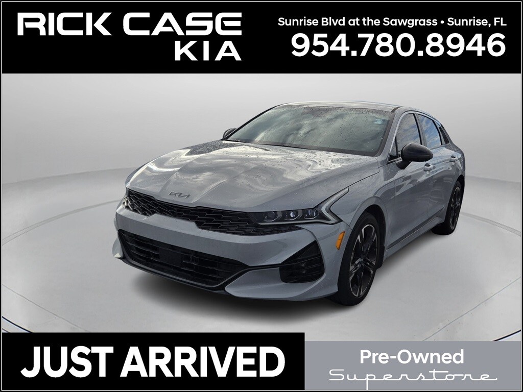 Recent Arrival! CARFAX One-Owner. 150 Point Inspection, Bluetooth, iPod Connector, Kia Certified, Leather, Navigation, BACK UP CAMERA, Unlimited Car Wash, Rick Case Rewards, 4-Wheel Disc Brakes, ABS brakes, Brake assist, Dual front impact airbags, Dual front side impact airbags, Electronic Stability Control, Forward Collision Avoidance-Assist, Four wheel independent suspension, Front anti-roll bar, GT-Line Premium Package, Highway Driving Assist, Knee airbag, LED Projection Headlamps, Low tire pressure warning, Navigation System, Occupant sensing airbag, Overhead airbag, Rear anti-roll bar, Rear side impact airbag, Smart Cruise Control w/Stop & Go, Sport steering wheel, Tachometer, Telescoping steering wheel, Tilt steering wheel, Trip computer, Wheels: 18" Gloss Black Machined Finish Alloy. Certified. Wolf Gray 2024 Kia K5 GT-Line FWD 8-Speed Automatic 1.6L I4 DGI Turbocharged DOHC 16V LEV3-ULEV70 180hp Kia Certified Pre-Owned Details: