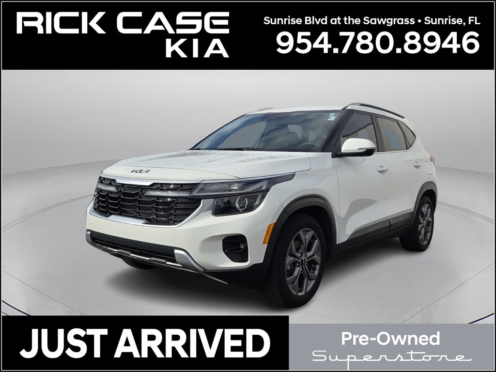 Recent Arrival! CARFAX One-Owner. Clean CARFAX. 150 Point Inspection, Bluetooth, iPod Connector, Kia Certified, BACK UP CAMERA, Unlimited Car Wash, Rick Case Rewards, 6 Speakers, Air Conditioning, Apple CarPlay & Android Auto, Cloth & Sofino Premium Leatherette Seat Trim, Exterior Parking Camera Rear, Front Bucket Seats, Front Center Armrest, Navigation System, Radio: AM/FM/HD/Satellite Display System, Split folding rear seat, Tachometer, Telescoping steering wheel, Tilt steering wheel, Trip computer, Wheels: 17" Alloy w/Dark Gray Finish. Certified. Snow White Pearl 2024 Kia Seltos S FWD CVT 2.0L I4 MPI Kia Certified Pre-Owned Details:
