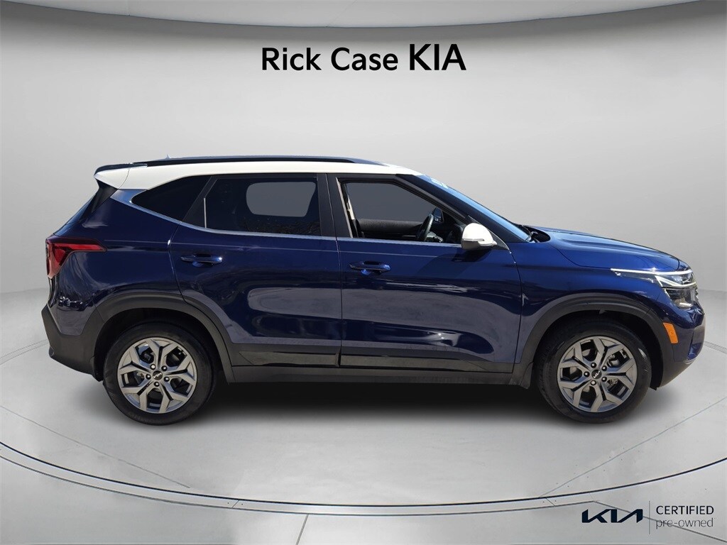 Priced below KBB Fair Purchase Price! CARFAX One-Owner. 150 Point Inspection, Bluetooth, Kia Certified, Navigation, BACK UP CAMERA, Unlimited Car Wash, Rick Case Rewards, 4-Wheel Disc Brakes, ABS brakes, Apple CarPlay & Android Auto, Dual front impact airbags, Dual front side impact airbags, Emergency communication system: 911 Connect, Exterior Parking Camera Rear, Front anti-roll bar, Front wheel independent suspension, Low tire pressure warning, Navigation System, Occupant sensing airbag, Overhead airbag, Radio: AM/FM/HD/Satellite Display System, Tachometer, Telescoping steering wheel, Tilt steering wheel, Trip computer, Wheels: 17" Alloy w/Dark Gray Finish. Certified. Dark Ocean Blue/White Roof 2024 Kia Seltos S FWD CVT 2.0L I4 MPI Kia Certified Pre-Owned Details: