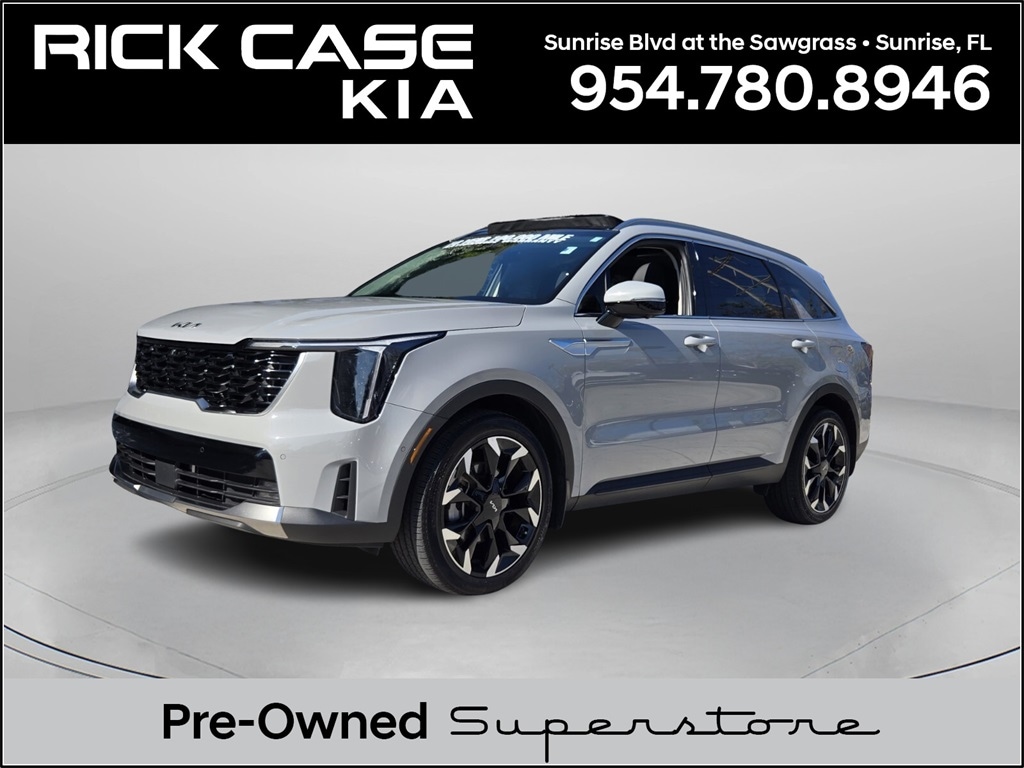 Recent Arrival! CARFAX One-Owner. Clean CARFAX. 10 year or 100,000 mile Powertrain Warranty, 150 Point Inspection, Kia Certified, Unlimited Car Wash, Rick Case Rewards, 4-Wheel Disc Brakes, ABS brakes, Alloy wheels, Apple CarPlay & Android Auto, Auto-dimming Rear-View mirror, Automatic temperature control, Delay-off headlights, Exterior Parking Camera Rear, Front dual zone A/C, Front fog lights, Navigation System, Panic alarm, Power driver seat, Power Liftgate, Power moonroof, Security system, Speed control, Wheels: 8.5J x 20" Gloss Black Alloy. Certified. Wolf Gray 2024 Kia Sorento SX FWD 8-Speed DCT 2.5L I4 DGI Turbocharged DOHC 16V LEV3-SULEV30 281hp Kia Certified Pre-Owned Details: