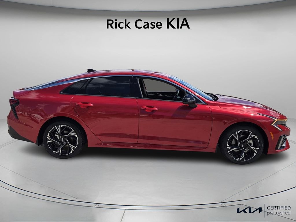 Priced below KBB Fair Purchase Price! CARFAX One-Owner. Clean CARFAX. 150 Point Inspection, Bluetooth, iPod Connector, Kia Certified, Navigation, BACK UP CAMERA, Unlimited Car Wash, Rick Case Rewards, 6 Speakers, Air Conditioning, AM/FM radio: SiriusXM, Dual front side impact airbags, Emergency communication system: Kia Connect (includes 1 year free trial), Four wheel independent suspension, Front anti-roll bar, Knee airbag, Low tire pressure warning, Navigation System, Occupant sensing airbag, Overhead airbag, Radio: AM/FM Audio System, Rear anti-roll bar, Rear side impact airbag, Rear window defroster, Speed-sensing steering, Traction control, Wheels: 18" x 7.5J Gloss Black Machined Finish Alloy. Certified. Runway Red 2025 Kia K5 GT-Line FWD 8-Speed Automatic I4 Kia Certified Pre-Owned Details: