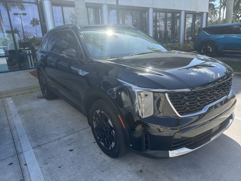 Recent Arrival! CARFAX One-Owner. Clean CARFAX. 10 year or 100,000 mile Powertrain Warranty, 150 Point Inspection, Unlimited Car Wash, Rick Case Rewards, 4-Wheel Disc Brakes, ABS brakes, Alloy wheels, Apple CarPlay & Android Auto, Delay-off headlights, Exterior Parking Camera Rear, Fully automatic headlights, Navigation System, Panic alarm, Power driver seat, Speed control, Wheels: 18" Gloss Black Alloy. Certified. Ebony Black 2025 Kia Sorento S FWD 8-Speed Automatic 2.5L I4 DGI DOHC 16V LEV3-SULEV30 191hp Kia Certified Pre-Owned Details: