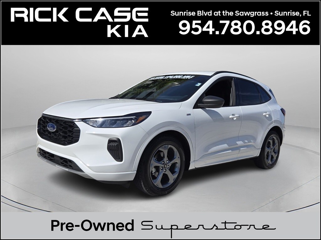 Priced below KBB Fair Purchase Price! CARFAX One-Owner. Clean CARFAX. 10 year or 100,000 mile Powertrain Warranty, 150 Point Inspection, Unlimited Car Wash, Rick Case Rewards, 4-Wheel Disc Brakes, ABS brakes, Alloy wheels, Brake assist, Connected Built-In Navigation, Delay-off headlights, Electronic Stability Control, Equipment Group 300A, Exterior Parking Camera Rear, Ford Co-Pilot360 Assist+, Fully automatic headlights, Intelligent Adaptive Cruise Control w/Stop-and-Go, Pedestrian Alert Sounder, Power driver seat, Power Liftgate, Rear Parking Sensor, Rear-View Camera, Speed Sign Recognition, SYNC 4 w/Enhanced Voice Recognition, Tech Pack #1, Wheels: 18" Rock Metallic Painted Aluminum. Oxford White 2023 Ford Escape ST-Line FWD 8-Speed Automatic 1.5L EcoBoost