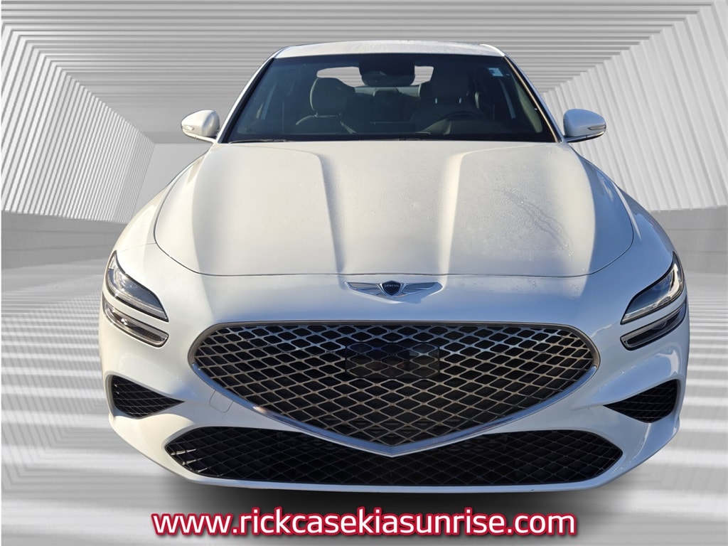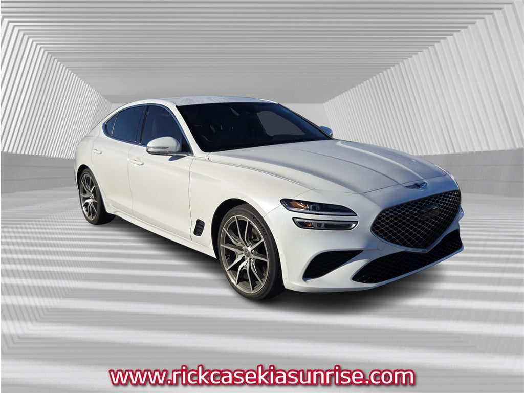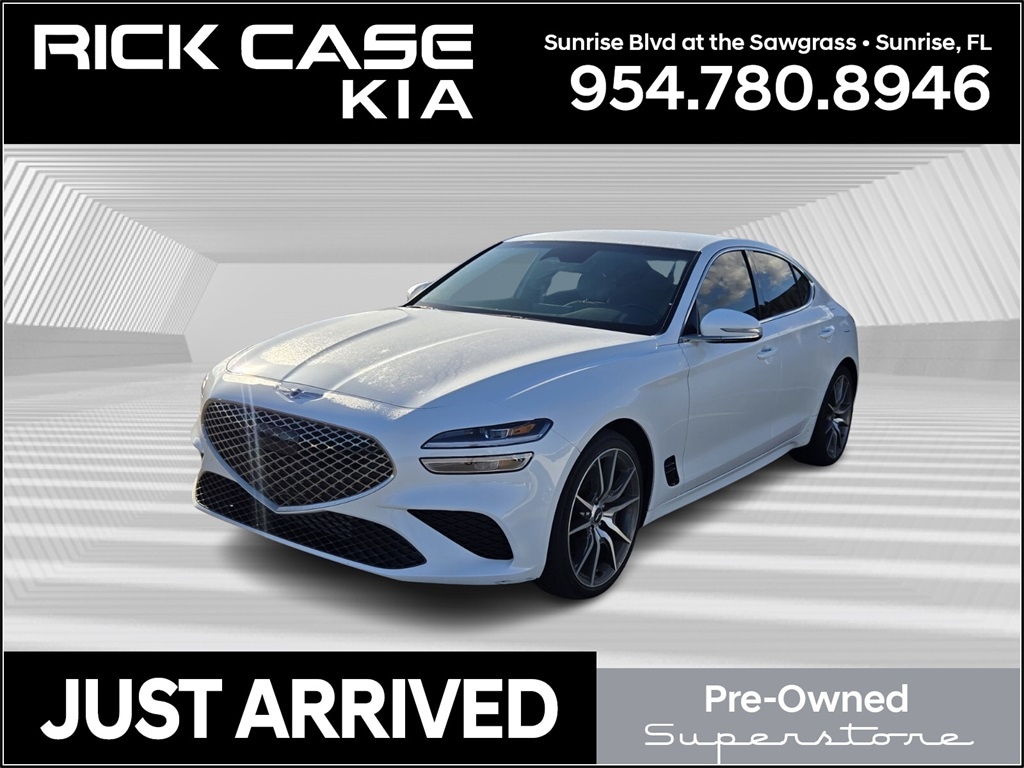 Recent Arrival! CARFAX One-Owner. 10 year or 100,000 mile Powertrain Warranty, 150 Point Inspection, Unlimited Car Wash, Rick Case Rewards, 4-Wheel Disc Brakes, ABS brakes, Alloy wheels, Android Auto & Apple CarPlay, Auto-dimming Rear-View mirror, Brake assist, Delay-off headlights, Electronic Stability Control, Exterior Parking Camera Rear, Fully automatic headlights, Panic alarm, Power driver seat, Security system, Speed control, Wheels: 19" x 8.0J Fr & 19" x 8.5J Rr Alloy. Uyuni White 2023 Genesis G70 2.0T RWD 8-Speed Automatic with SHIFTRONIC I4
