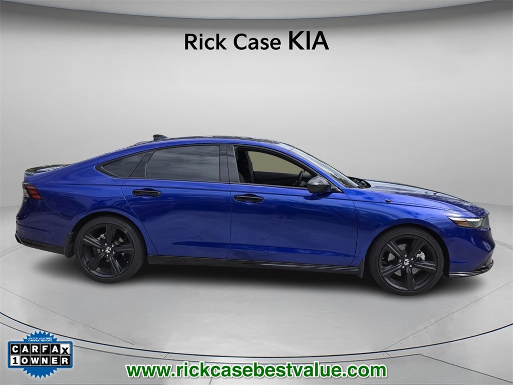 Priced below KBB Fair Purchase Price! CARFAX One-Owner. 10 year or 100,000 mile Powertrain Warranty, iPod Connector, Leather, BACK UP CAMERA, Unlimited Car Wash, Rick Case Rewards, 4-Wheel Disc Brakes, 8 Speakers, ABS brakes, Apple CarPlay/Android Auto, Blind Spot Information (BSI) System warning, Dual front impact airbags, Dual front side impact airbags, Emergency communication system: HondaLink, Exterior Parking Camera Rear, Front anti-roll bar, Knee airbag, Low tire pressure warning, Memory seat, Occupant sensing airbag, Overhead airbag, Power moonroof, Power passenger seat, Radio: 180-Watt Audio System, Rear anti-roll bar, Rear side impact airbag, Split folding rear seat. Canyon River Blue Metallic 2024 Honda Accord Hybrid Sport-L FWD eCVT 2.0L 16V DOHC