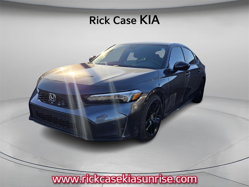 Recent Arrival! CARFAX One-Owner. Clean CARFAX. 10 year or 100,000 mile Powertrain Warranty, 150 Point Inspection, Bluetooth, BACK UP CAMERA, Unlimited Car Wash, Rick Case Rewards, 4-Wheel Disc Brakes, 8 Speakers, ABS brakes, Dual front impact airbags, Dual front side impact airbags, Emergency communication system: HondaLink, Exterior Parking Camera Rear, Front anti-roll bar, Knee airbag, Low tire pressure warning, Occupant sensing airbag, Overhead airbag, Radio: 180-Watt Audio System, Rear anti-roll bar, Rear side impact airbag. Gray 2025 Honda Civic Sport FWD CVT 2.0L I4 DOHC 16V