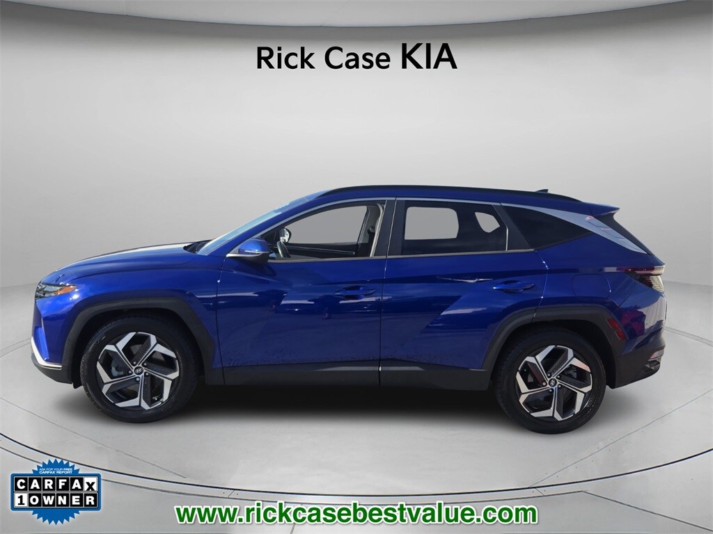 Priced below KBB Fair Purchase Price! CARFAX One-Owner. Clean CARFAX. 10 year or 100,000 mile Powertrain Warranty, 150 Point Inspection, Leather, Navigation, BACK UP CAMERA, Unlimited Car Wash, Rick Case Rewards, 10.25" Digital Instrument Cluster, 6 Speakers, Auto-Dimming Interior Mirror w/Homelink, Convenience + Premium Package, Digital Key, Dual Automatic Temperature Control, Hands-Free Power Liftgate w/Auto-Open, Leather-Wrapped Shift Knob, Leather-Wrapped Steering Wheel, LED Interior Lights (Room, Map), Option Group 02, Option Group 03, Power driver seat, Power Sunroof, Radio: AM/FM/HD/SiriusXM Audio System, Radio: Bose Premium Audio System w/AM/FM/HD, Steering wheel mounted audio controls, Ultrasonic Rear Occupant Alert, Wheels: 19" x 7.5J" Machine-Face Finish Alloy, Wireless Phone Charging. Intense Blue 2022 Hyundai Tucson SEL FWD 8-Speed Automatic with SHIFTRONIC 2.5L I4 DGI DOHC 16V LEV3-ULEV70 187hp