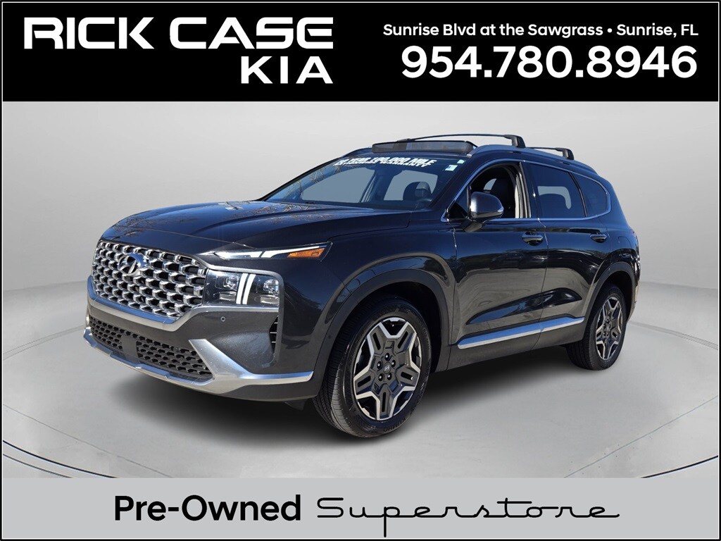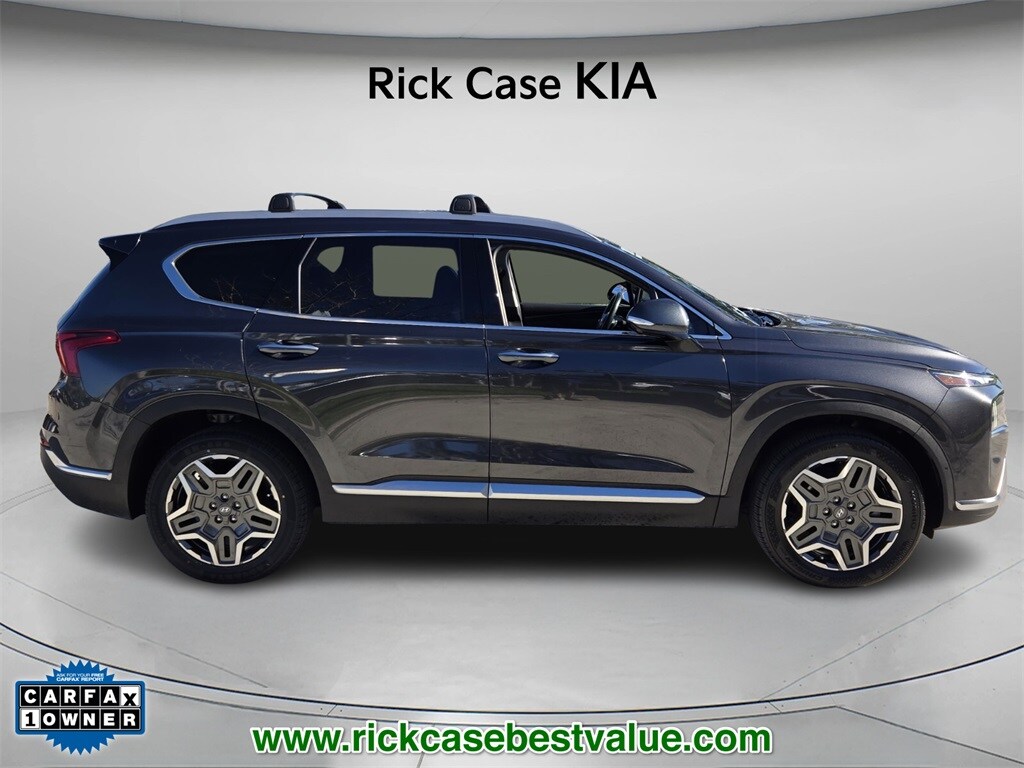 Priced below KBB Fair Purchase Price! CARFAX One-Owner. Clean CARFAX. 10 year or 100,000 mile Powertrain Warranty, 150 Point Inspection, Bluetooth, iPod Connector, Navigation, Unlimited Car Wash, Rick Case Rewards, 12 Speakers, Apple CarPlay & Android Auto, Brake assist, Electronic Stability Control, Exterior Parking Camera Rear, Heated & Ventilated Front Bucket Seats, Memory seat, Navigation System, Option Group 01, Power driver seat, Power Liftgate, Power steering, Power windows, Radio: AM/FM Harman Kardon Display Audio, Telescoping steering wheel, Tilt steering wheel, Trip computer, Wheels: 19" x 7.5J Alloy. Portofino Gray 2023 Hyundai Santa Fe Limited FWD Shiftronic 2.5L I4