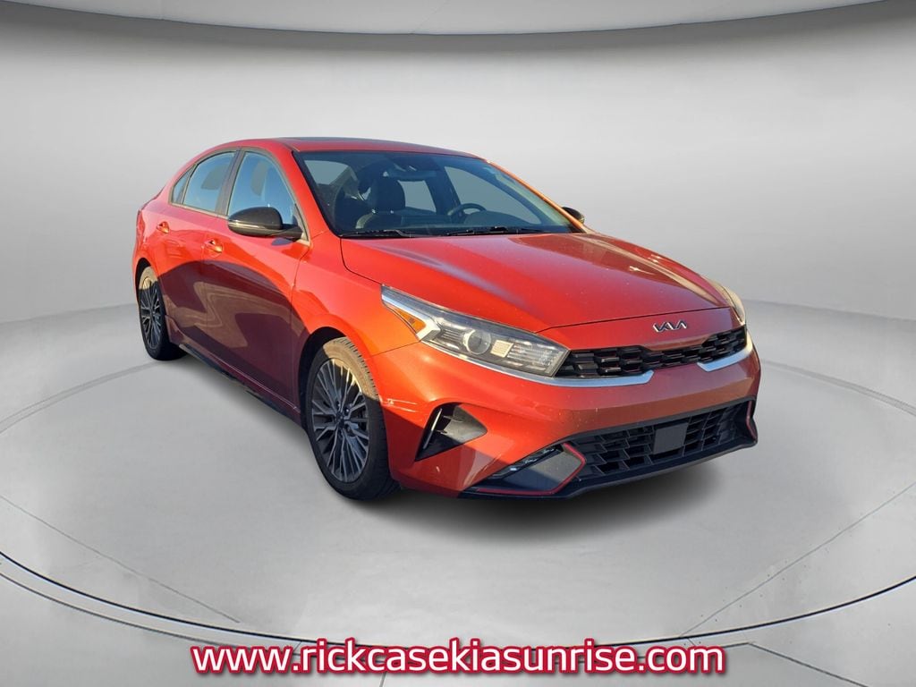 Recent Arrival! Priced below KBB Fair Purchase Price! CARFAX One-Owner. Clean CARFAX. 10 year or 100,000 mile Powertrain Warranty, 150 Point Inspection, Kia Certified, Unlimited Car Wash, Rick Case Rewards, Alloy wheels, Apple CarPlay & Android Auto, Delay-off headlights, Electronic Parking Brake (EPB) w/Auto Hold, Exterior Parking Camera Rear, Forward Collision Avoidance-Assist - Cyclist, Front fog lights, GT-Line Premium Package, GT-Line Sport Premium Package, Heated & Ventilated Front Seats, Highway Driving Assist (HDA), Navigation System, Navigation-Based Smart Cruise Control (NSCC), Overhead LED Front & Rear Reading Lamps, Panic alarm, Power Sunroof, Radio: AM/FM/MP3 harman/kardon Premium Audio System, Rear AC Vent, Rear USB Charger, Security system, Smart Cruise Control, SynTex Seat Trim, Wheels: 17" Graphite Finish Alloy, Wireless Charging. Certified. Fire Orange 2022 Kia Forte GT-Line FWD CVT 2.0L 4-Cylinder MPI Kia Certified Pre-Owned Details: