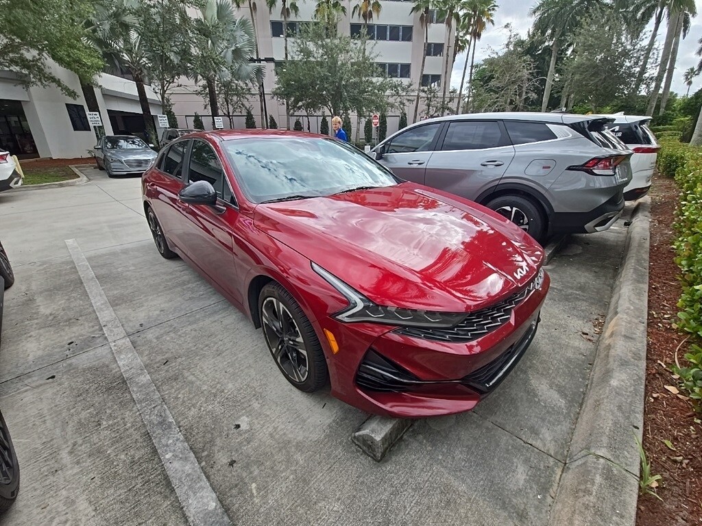 Recent Arrival! Priced below KBB Fair Purchase Price! CARFAX One-Owner. Clean CARFAX. 10 year or 100,000 mile Powertrain Warranty, 150 Point Inspection, Bluetooth, iPod Connector, Kia Certified, Navigation, BACK UP CAMERA, Unlimited Car Wash, Rick Case Rewards, 4-Wheel Disc Brakes, 6 Speakers, ABS brakes, Apple CarPlay & Android Auto, Automatic temperature control, Brake assist, Dual front impact airbags, Dual front side impact airbags, Electronic Stability Control, Front anti-roll bar, Front Center Armrest, Front dual zone A/C, Knee airbag, Low tire pressure warning, Navigation System, Occupant sensing airbag, Overhead airbag, Power driver seat, Radio: AM/FM/MP3 Audio System, Rear anti-roll bar, Rear side impact airbag, Rear window defroster, Split folding rear seat, Tachometer, Telescoping steering wheel, Tilt steering wheel, Trip computer, Wheels: 18" Gloss Black Machined Finish Alloy. Passion Red 2023 Kia K5 GT-Line FWD 8-Speed Automatic 1.6L I4 DGI Turbocharged DOHC 16V LEV3-ULEV70 180hp