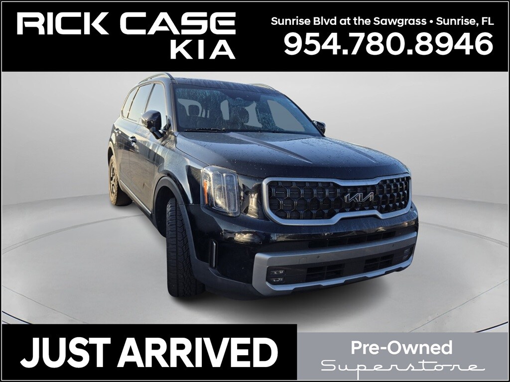 Recent Arrival! CARFAX One-Owner. 150 Point Inspection, Bluetooth, iPod Connector, Kia Certified, Leather, Navigation, Power Sunroof, Panoramic Roof, BACK UP CAMERA, Unlimited Car Wash, Rick Case Rewards, 10 Speakers, 4-Wheel Disc Brakes, ABS brakes, Air Conditioning, Apple CarPlay & Android Auto, Auto-leveling suspension, Dual front impact airbags, Dual front side impact airbags, Emergency communication system: 911 Connect, Exterior Parking Camera Rear, Front anti-roll bar, Front dual zone A/C, harman/kardon® Speakers, Heads-Up Display, Heated & Ventilated Front Bucket Seats, Illuminated entry, Knee airbag, Low tire pressure warning, Memory seat, Navigation System, Occupant sensing airbag, Overhead airbag, Power driver seat, Power Liftgate, Power moonroof, Premium Nappa Leather Seat Trim, Radio: AM/FM harman/kardon Audio System, Rain sensing wipers, Rear air conditioning, Rear anti-roll bar, Rear side impact airbag, Rear window defroster, Smart Key w/ Push Button and Remote Start, Steering wheel mounted audio controls, Tachometer, Telescoping steering wheel, Terracotta Interior Color Package, Tilt steering wheel, Trip computer, Wheels: 18" x 7.5" Black Finish X-PRO Exclusive. Ebony Black 2023 Kia Telluride SX-Prestige X-Pro AWD 8-Speed Automatic 3.8L V6 DGI DOHC Dual CVVT