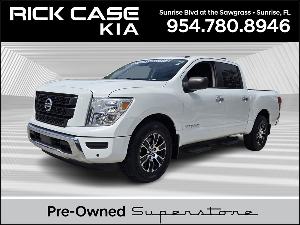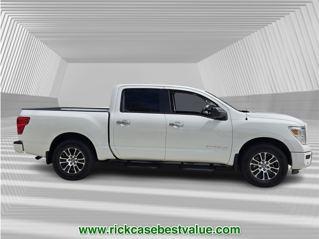 Priced below KBB Fair Purchase Price! 10 year or 100,000 mile Powertrain Warranty, Bluetooth, BACK UP CAMERA, Unlimited Car Wash, Rick Case Rewards, 110V/12V Outlets In Back Of Center Console, 2 Illuminated USB-A Ports In Back Of Center Console, 4-Wheel Disc Brakes, ABS brakes, Auto-Dimming Rear-View Mirror, Chrome Interior Door Locks, Convex Spotter Mirror, Dedicated Cell Phone Holder, Dual front impact airbags, Dual front side impact airbags, Dual Zone Automatic HVAC, Emergency communication system: NissanConnect Services, Front & Rear Parking Sensors, Front anti-roll bar, Front wheel independent suspension, Heated Front Captain's Chairs, Intelligent Key System, Knee airbag, Leather-Wrapped Steering Wheel, Low tire pressure warning, NissanConnect featuring Apple CarPlay and Android Auto, Occupant sensing airbag, Overhead airbag, Power Sliding Rear Window w/Defogger, Radio: NissanConnect w/Navigation, Rear anti-roll bar, Rear HVAC Vents, Remote Engine Start on Key Fob, SV Convenience Package, Traffic Sign Recognition (TSR), Trip computer, Wheels: 18" x 8" Silver Painted Alloy. Glacier White 2021 Nissan Titan SV RWD 9-Speed Automatic 5.6L V8 DOHC 32V 400hp
